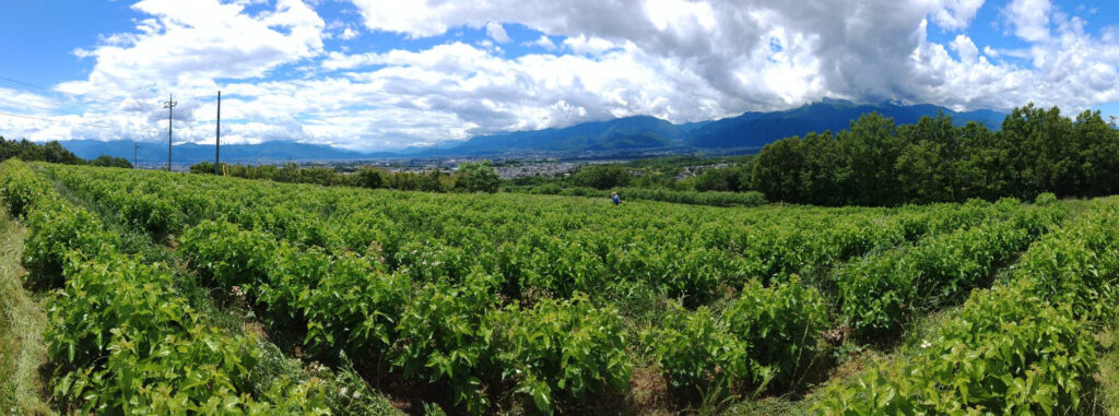 桑園からは富士山も見ることができますが、甲府盆地の気候条件で富士山は意外と雲に隠れがちです。